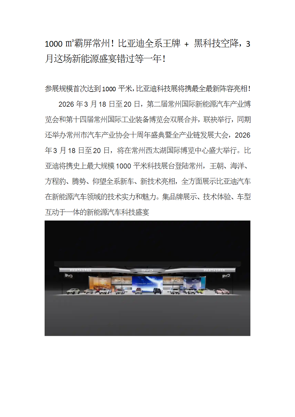 1000㎡霸屏常州!比亚迪全系王牌 + 黑科技空降,3 月这场新能源科技盛宴来喽!
